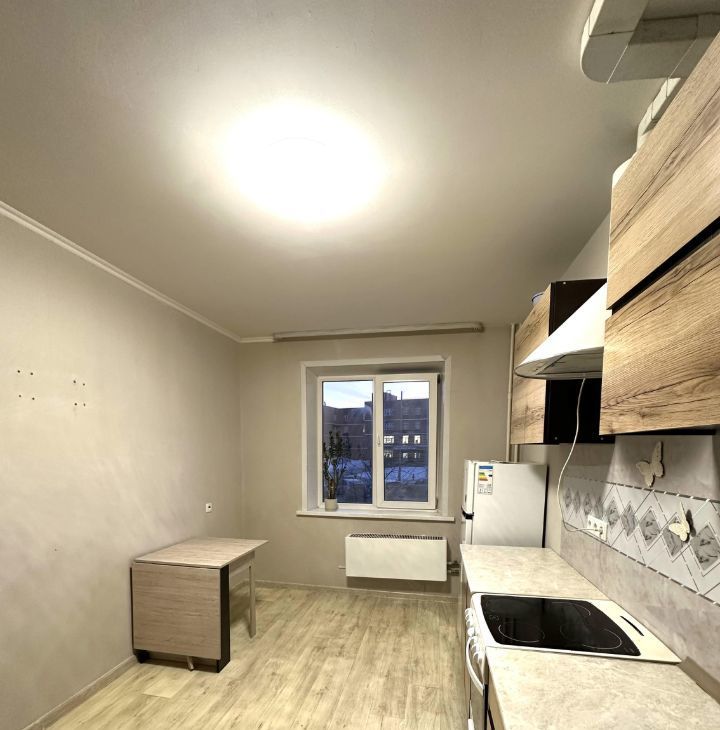 Есть кухонный гарнитур с холодильником, эл. плита с духовкой, стиральная машина, кухонный стол со стульями, шкаф в прихожей