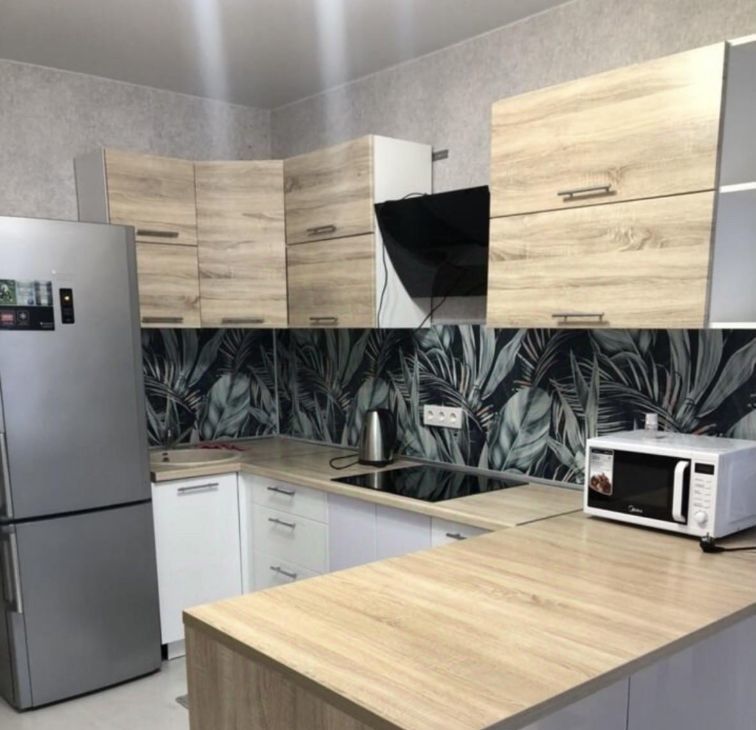 Шкаф купе, диван, комод , кухонный гарнитур с панелью варочной встроенной,стиральная машинка, холодильник,вытяжка, микроволновка.