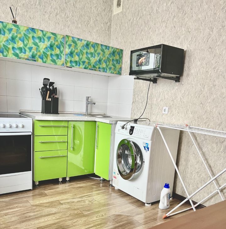 4. В квартире есть вся необходимая мебель и бытовая техника, минимальный набор посуды и постельного белья. Окна во двор, закрытая территория