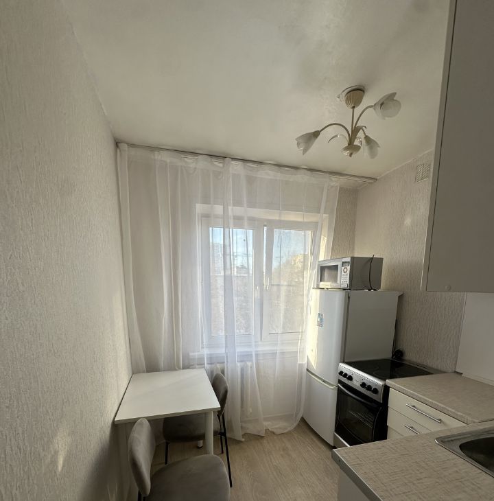 В квартире сделан свежий косметический ремонт, что делает её аккуратной и приятной для проживания. Она полностью меблирована: есть мебель как в комнате, так и на кухне. Из техники — холодильник и стиральная машина, а в ванной комнате установлена ванна.