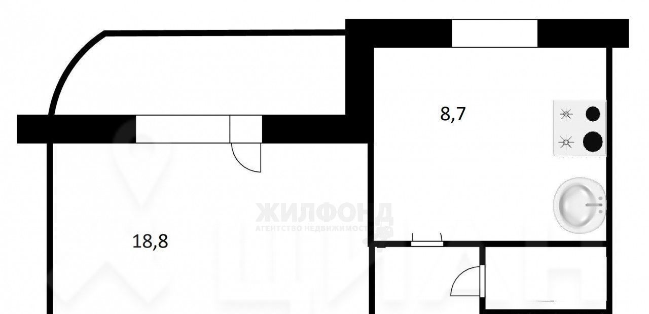 Студия Новосибирская область, Новосибирск ул. Виталия Потылицына, 3 (32.0 м²)