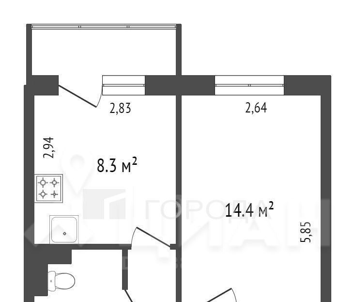 Студия Новосибирская область, Новосибирск ул. Михаила Кулагина, 31 (25.0 м²)