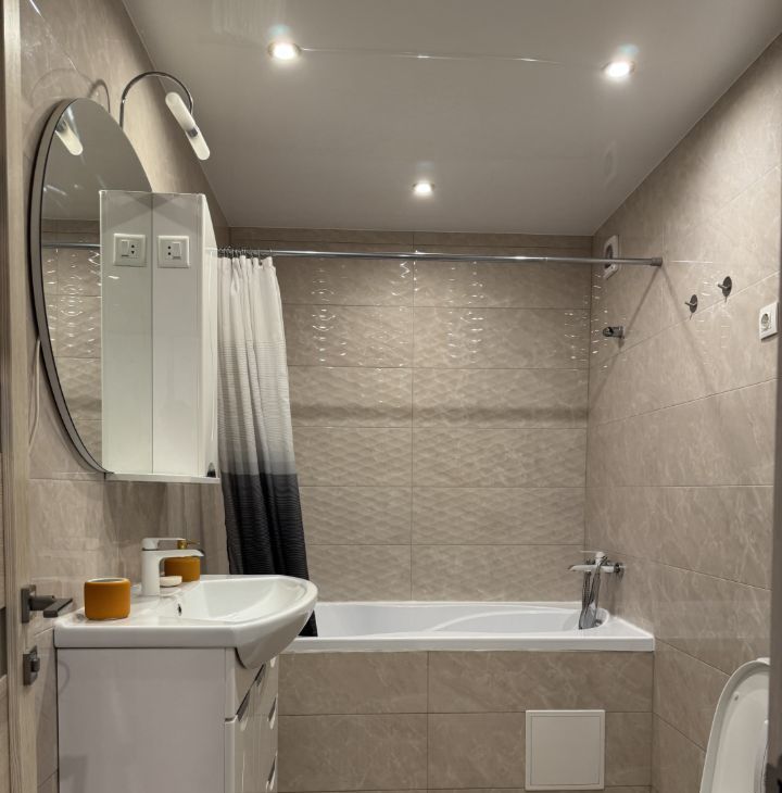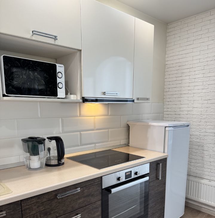 Квартира с качественным евроремонтом, полностью меблирована — есть всё необходимое для комфортного проживания. На кухне и в комнате современная мебель, а также вся необходимая техника: холодильник и стиральная машина. В ванной комнате установлена ванна, что позволит расслабиться после насыщенного дня.