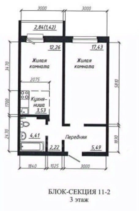 1-к кв. Новосибирская область, Новосибирск ул. Мясниковой, 8/2 (42.0 м²)