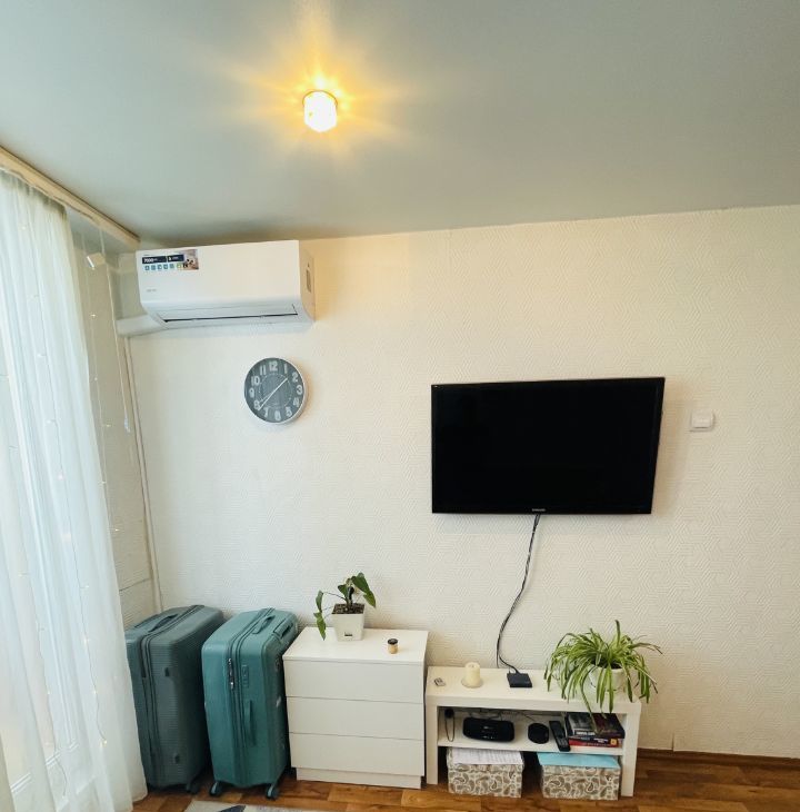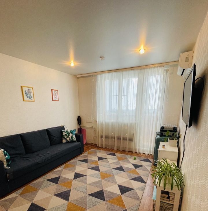 В квартире есть все необходимое для проживания: мебель, большой тв с приставкой, кондиционер в комнате, стиральная машина, плита, чайник, кофеварка и прочая кухонная техника, посуда, застекленный балкон в комнате. В 5 минутах ходьбы автобусная остановка, школа, детский сад, супермаркеты и аптеки.