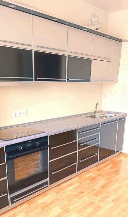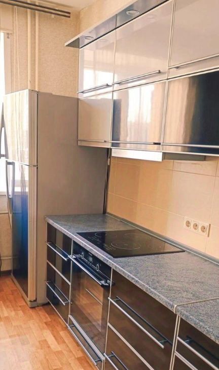 Бытовая техника :встроенные духовой шкаф и жарочная панель, вытяжка, холодильник, стиральная машинка-автомат.