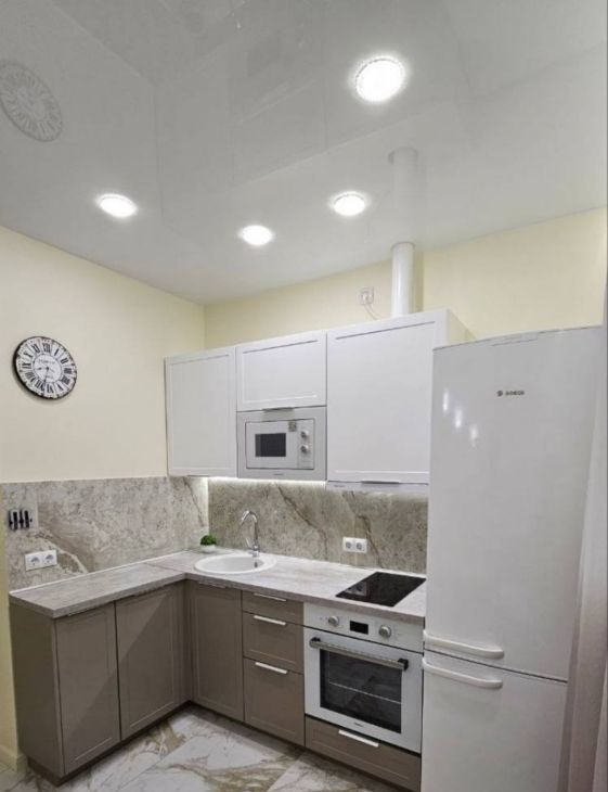 В квартире есть все для проживания: мебель, большая кровать, встроенный шкаф прихожий, шкаф в комнате, набор для посуды, кухонный гарнитур. Из техники: духовой шкаф, вытяжка, микроволновая печь, холодильник, стиральная машина, телевизор, варочная панель, чайник.