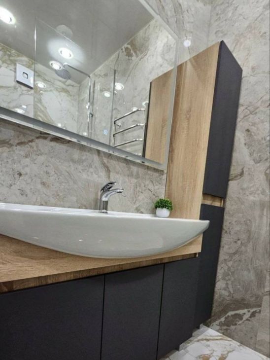 Ванна и туалет полностью из керамогранита.