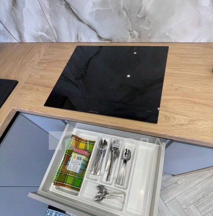 •В кухонный гарнитур встроена посудомоечная машина.