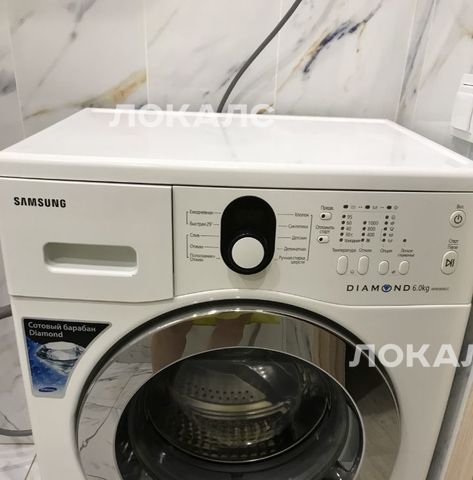 Качественно выполненный санузел в нарядном белом цвете отлично гармонируют с ванной и сантехническим оборудованием такого же цвета. Новая стиральная машинка-автомат.