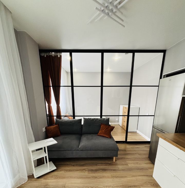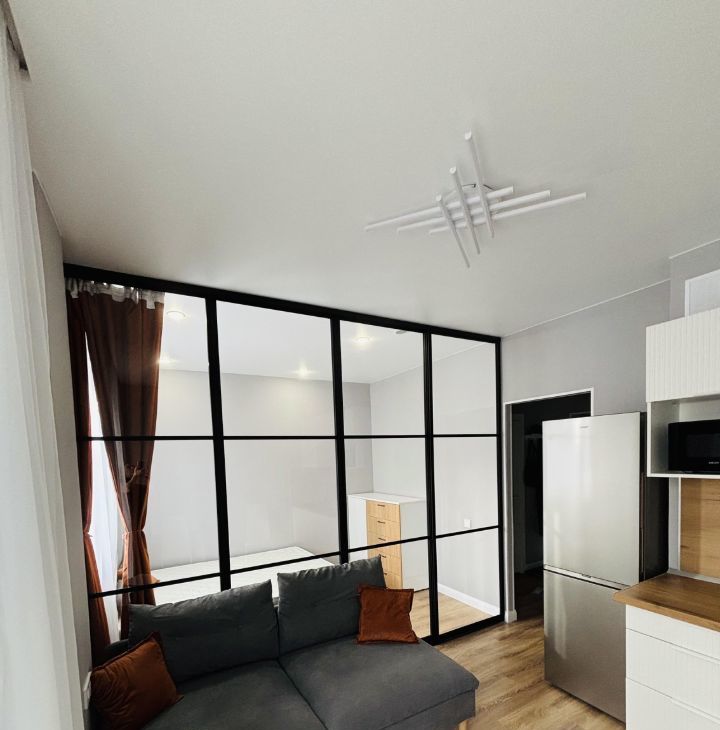 В квартире холодильник,стиральная машина,микроволновая печь в Вашем распоряжении. Спальня отдельно, отделена стеклянной стеной,которая подчеркивает пространство,но и позволяет уединиться, закрыв шторы. Много мест для хранения,а так же оборудованная гардеробная. Квартира новая, с новой техникой и мебелью. Квартира сдается для гостей без животных.