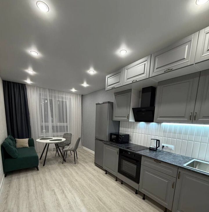 Квартира представляет собой уютное и светлое пространство, наполненное теплом и комфортом. Просторный зал с панорамными окнами открывает вид на живописный городской пейзаж. Современная мебель и стильный интерьер создают гармоничную атмосферу. В квартире есть всё необходимое для комфортного проживания: удобная кровать в спальне, функциональная кухня с бытовой техникой, обеденная зона и комфортная гостиная. Функциональная планировка позволяет рационально использовать каждый квадратный метр. Качественные отделочные материалы и продуманный дизайн делают эту квартиру идеальным выбором для жизни.