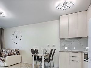 Квартира расположена на 8 этаже 27-этажного кирпично-монолитного дома, построенного в 2024 году. Здесь вас порадует качественный дизайнерский ремонт, который создаёт атмосферу уюта и гармонии. Общая площадь квартиры составляет 35 кв. м, из них жилая — 21 кв. м, а кухня — 11 кв. м. Окна выходят на улицу и во двор, что обеспечивает хорошее естественное освещение.