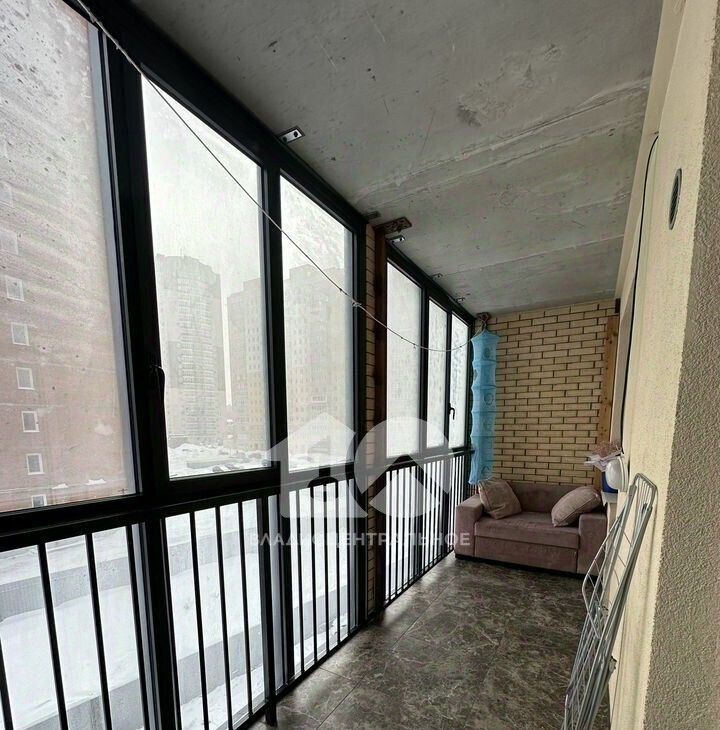Жилая площадь составляет 27 кв. м, кухня — 10 кв. м. Есть просторная лоджия, где можно обустроить место для отдыха. Окна выходят на улицу, обеспечивая достаточное естественное освещение.