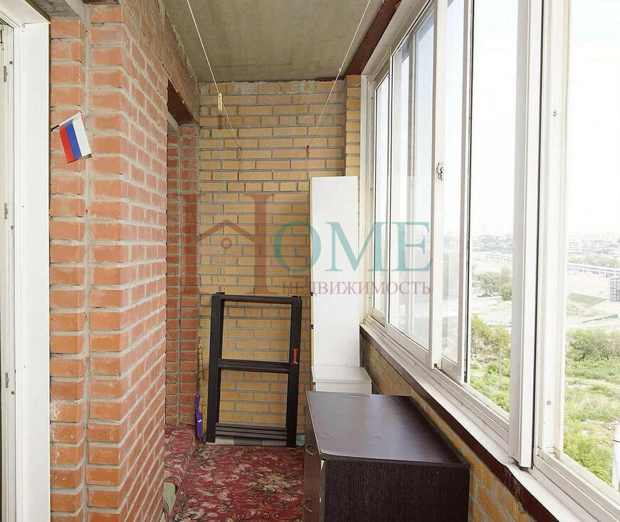 Большая закрытая лоджия с выходом в обе комнаты.