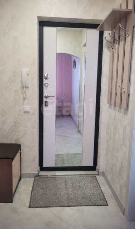 Коридор: большое зеркало, вешалка, шкаф, пуфик