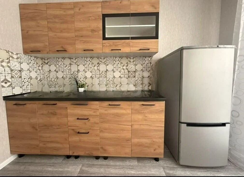 В квартире выполнен качественный евроремонт, благодаря чему вы сможете насладиться комфортом и уютом с первого дня проживания. В комнате и на кухне есть вся необходимая мебель, что избавит вас от лишних забот. Кухня оборудована современной техникой: холодильником. варочная панель и микроволновая печь. Совмещенный санузел включает в себя ванну , что позволит расслабиться после долгого дня. техника: стиральная машинка автомат