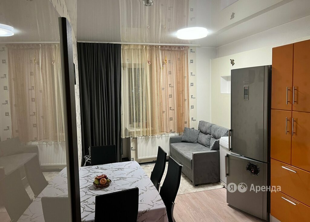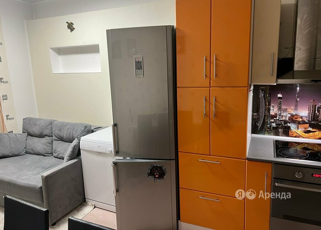 Сдаётся 1-комнатная квартира площадью 40 кв.м. с евроремонтом на 23 этаже в 25-этажном доме на срок от 11 месяцев. Из техники есть: