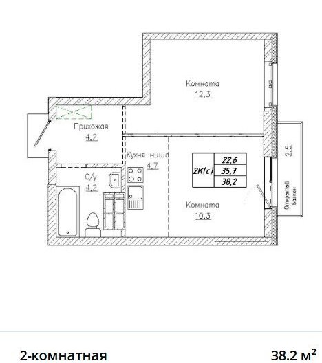 1-к кв. Новосибирская область, Новосибирск ул. Декабристов, 117 (37.6 м²)