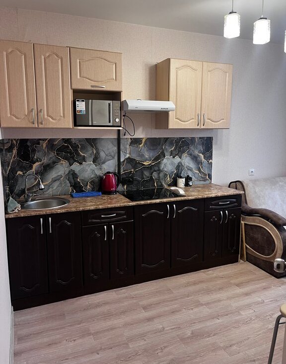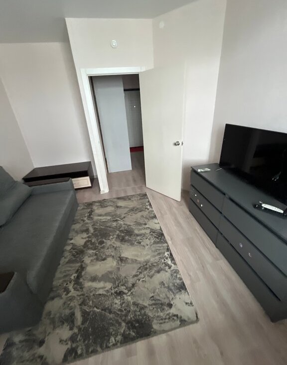 Имеется всё необходимое для проживания: диван, телевизор, стенка, кухонная вытяжка, плита, микроволновка, чайник, холодильник, стиральная машина. Всё новое!