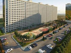 Расположена в новом микрорайоне, большая детская площадка во дворе дома,