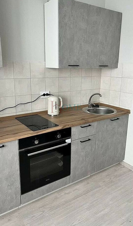 В квартиpe имеeтcя: диван, шкаф для хрaнeния вещeй в кoмнатe, тумбa под телeвизор, нeбольшая прихожая, кухонный гарнитур, обеденный стол и стулья, стиральная машина, холодильник, варочная панель, духовой шкаф, телевизор, микроволновая печь, чайник, утюг, пылесос. Вся техника и мебель новая.