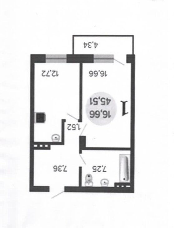 1-комнатная квартира: Новосибирск, улица Лескова, 25 (45.5 м²)