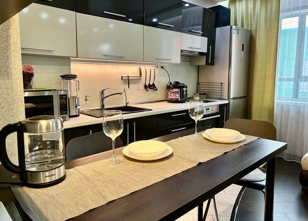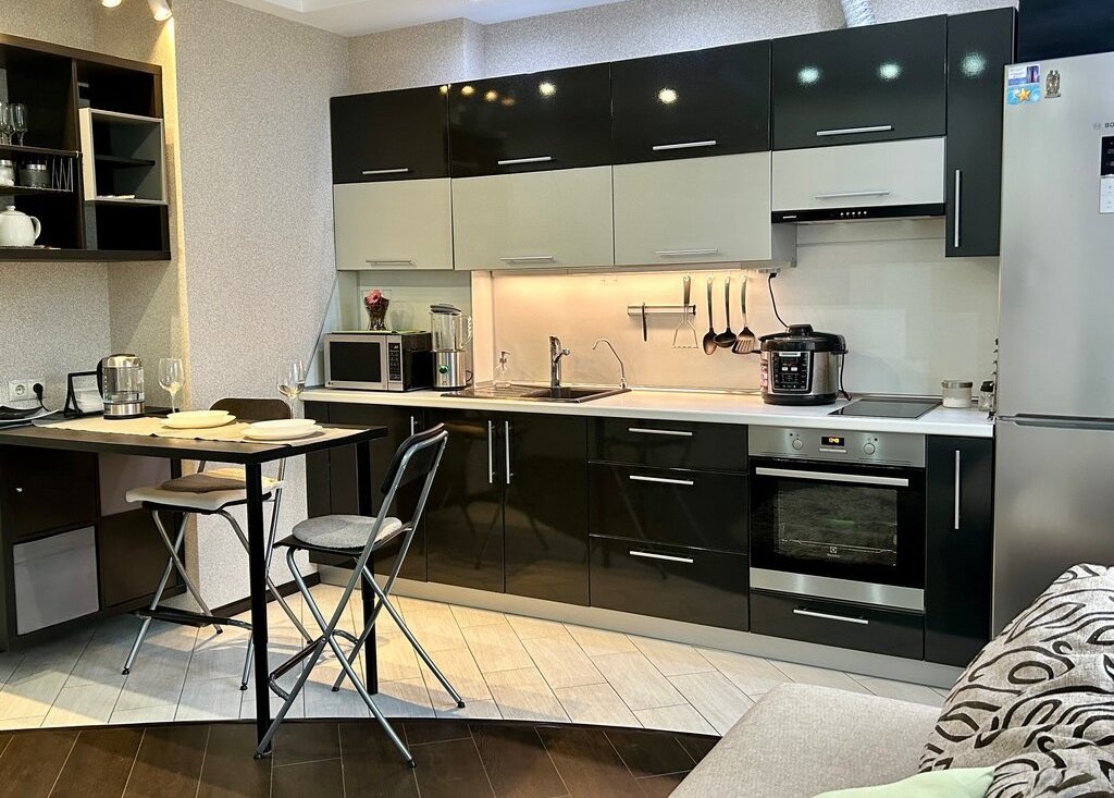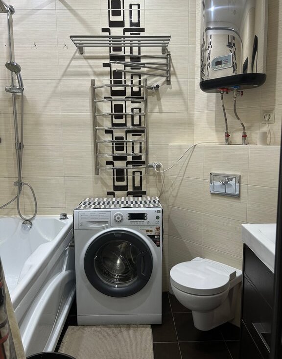 В квартире имеется: большая двуспальная кровать, раздвижной диван, телевизор sony, холодильник bosh, электроплита с вытяжкой, духовка Electrolux, стиральная машина ariston, ванная с тропическим душем, водонагреватель(бойлер), блендер, столовые приборы и посуда на 6 персон, посуда для готовки, пылесос, микроволновка и тд.