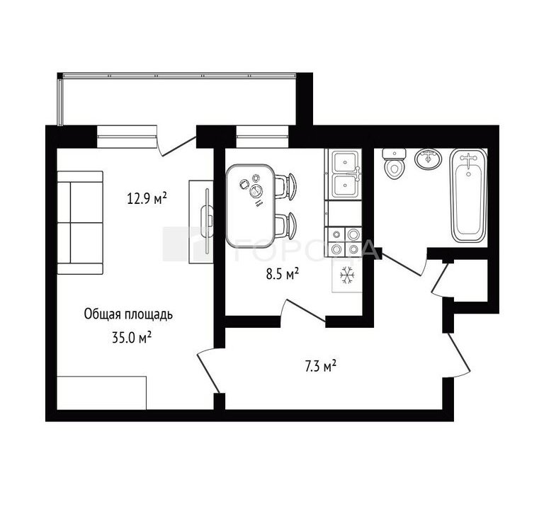 1-комнатная квартира: Новосибирск, улица Мичурина, 29 (35 м²)