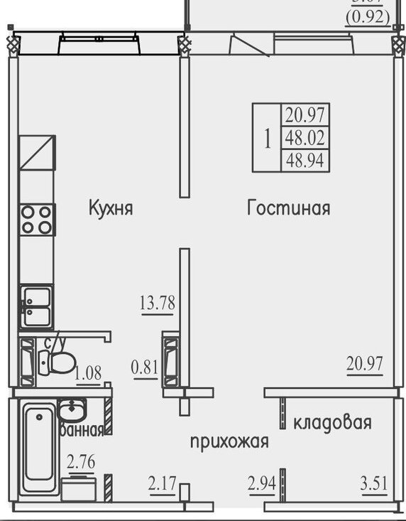 1-к кв. Новосибирская область, Новосибирск ул. Виктора Шевелева, 34 (40.8 м²)