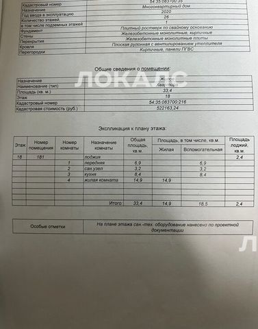 1-комнатная квартира: Новосибирск, улица Ошанина, 1 (33.4 м²)