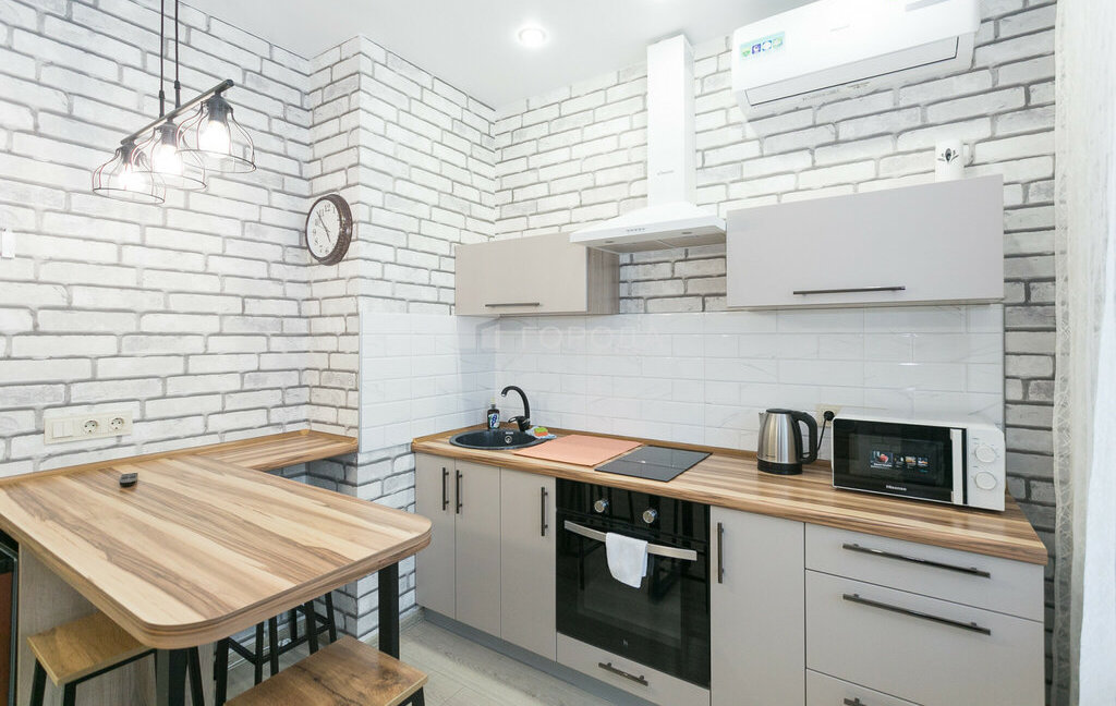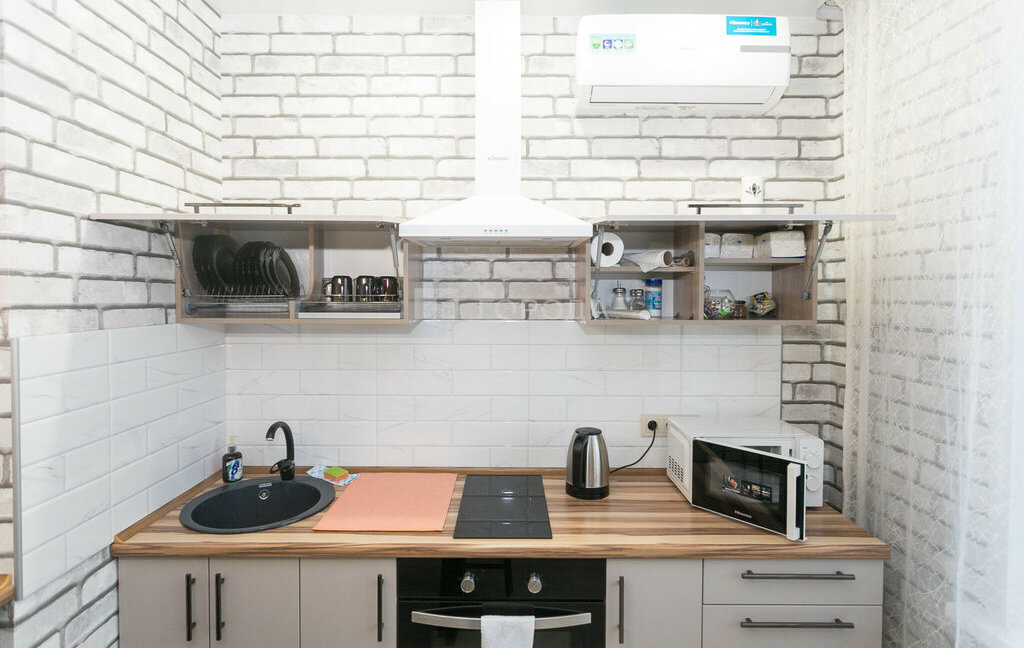 Установлен кондиционер, водонагреватель. Варочная поверхность и полноценная духовка + вытяжка.