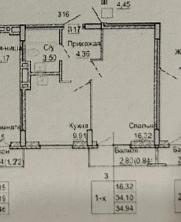 1-комнатная квартира: Новосибирск, Междуреченская улица, 7/1 (34.4 м²)