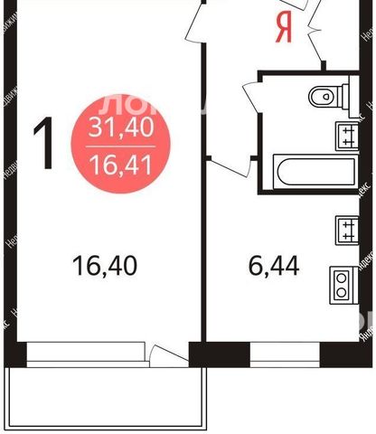 1-комнатная квартира: Новосибирск, улица Жуковского, 106 (31.4 м²)
