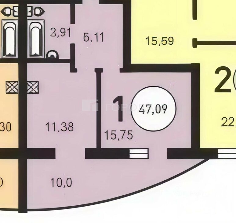 1-комнатная квартира: Новосибирск, Вилюйская улица, 7 (47 м²)