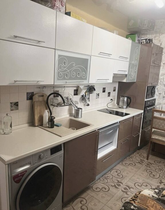 -холодильник, плита с духовкой, микроволновка, посудомоечная и стиральная машины