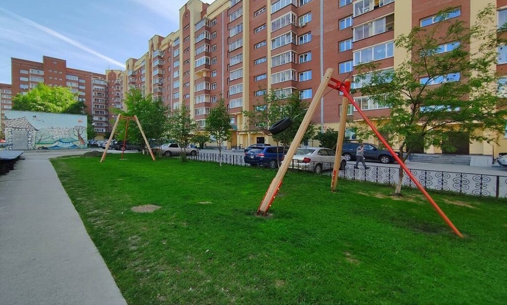 Дом на улице Выборная, 125/1. Территория ухоженная.Есть большая детская площадка и спортзал «Европа» - очень удобно, не надо никуда ехать.