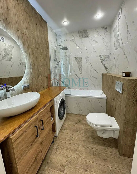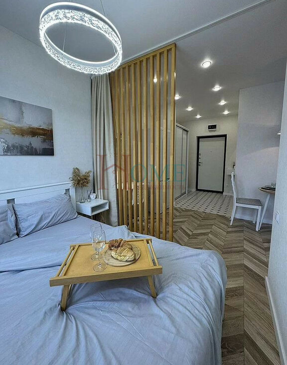 Качественная отделка. Полностью оборудована для комфортной жизни. Спальня отделена от кухни-гостиной. Санузел: ванна, тропический душ, "водопадный" смеситель, инсталляция.