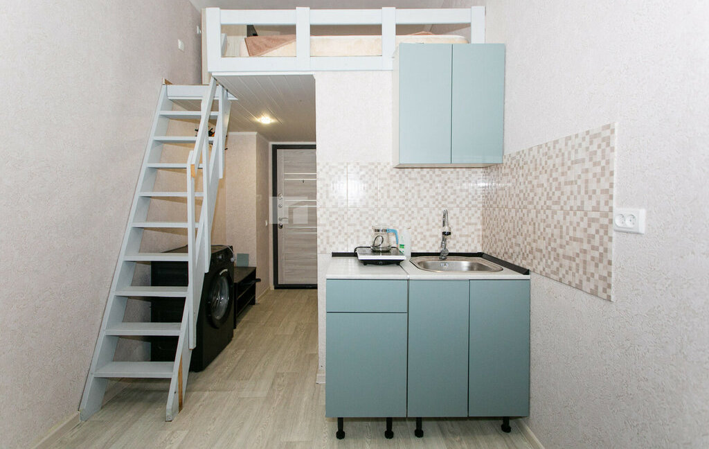 Предлагается в аренду компактная двухуровневая квартира-студия площадью 15 метров квадратных по адресу Выставочная, 3.