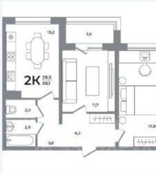 2-к кв. Новосибирская область, Новосибирск Беловежская ул., 1 (59.0 м²)