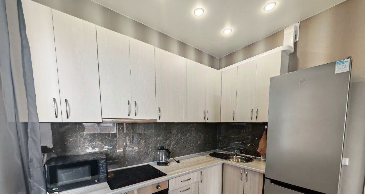 Свежий ремонт, никто не жил, вся мебель и техника новые, как на фото. Рассмотрим нанимателей строго без животных. КУХНЯ-ГОСTИHАЯ 22,8 м2 с окнами на две стороны и спальня 13,3 м2. Потолки натяжные со встроенными светильниками, на полу ламинат, установлены биметаллические радиаторы, качественная входная дверь, пластиковые окна, теплый пол. КВАРТИРА ОЧЕНЬ СВЕТЛАЯ!