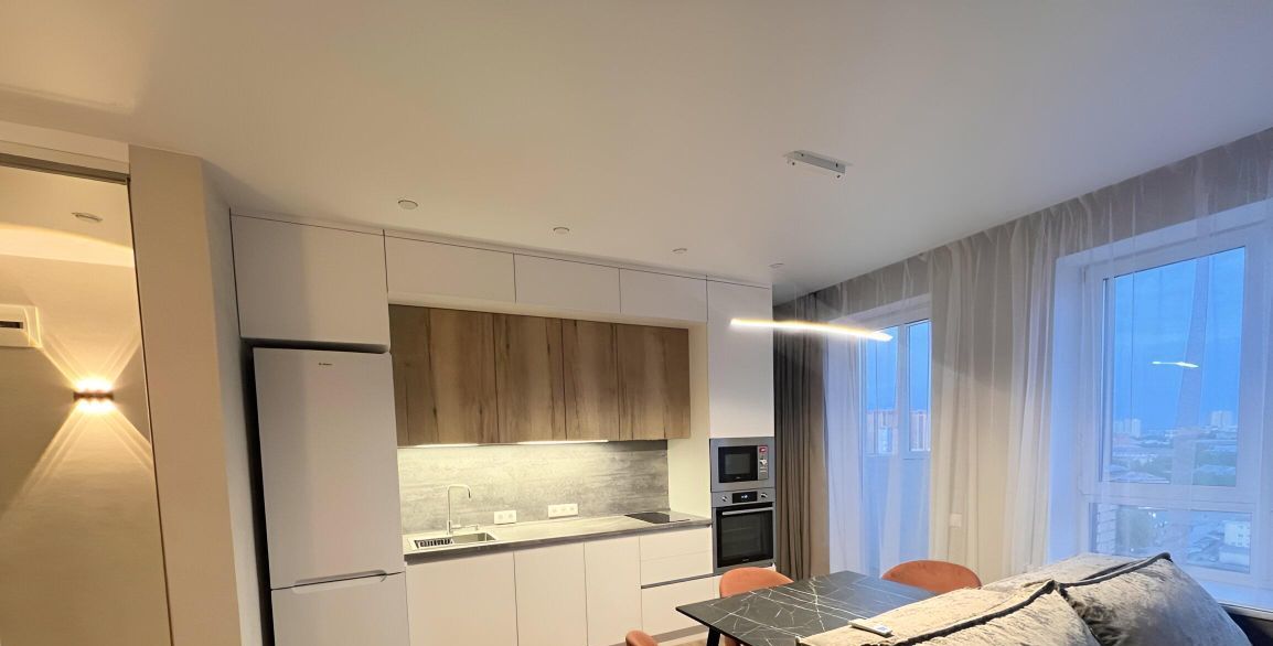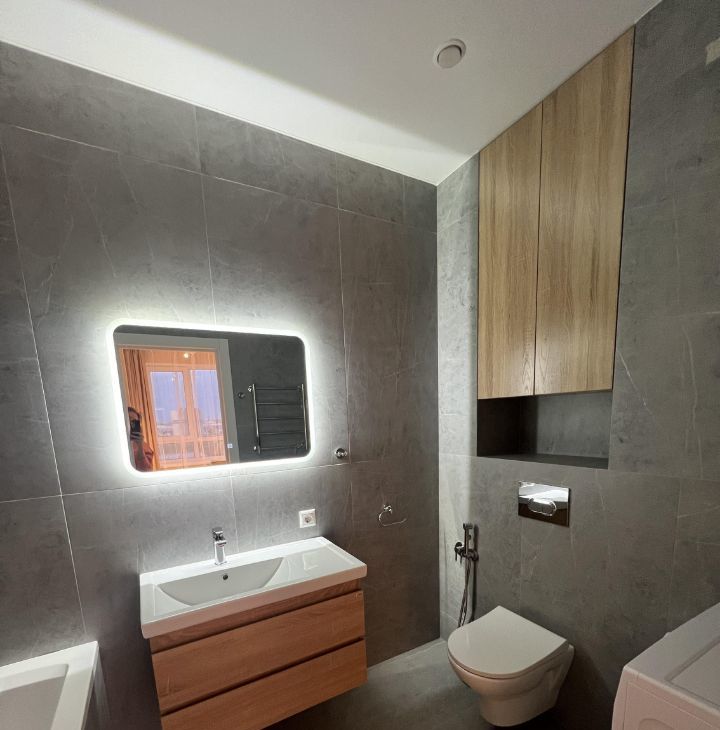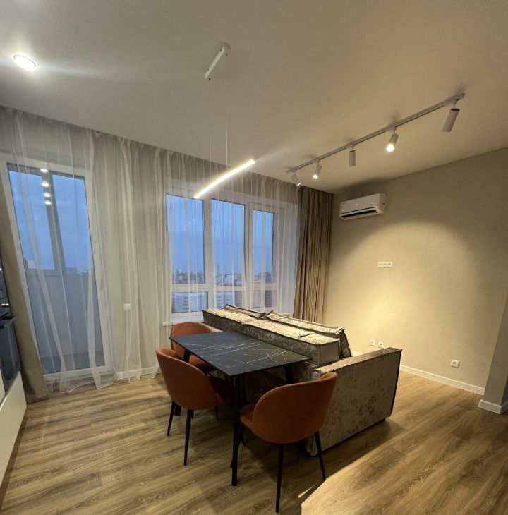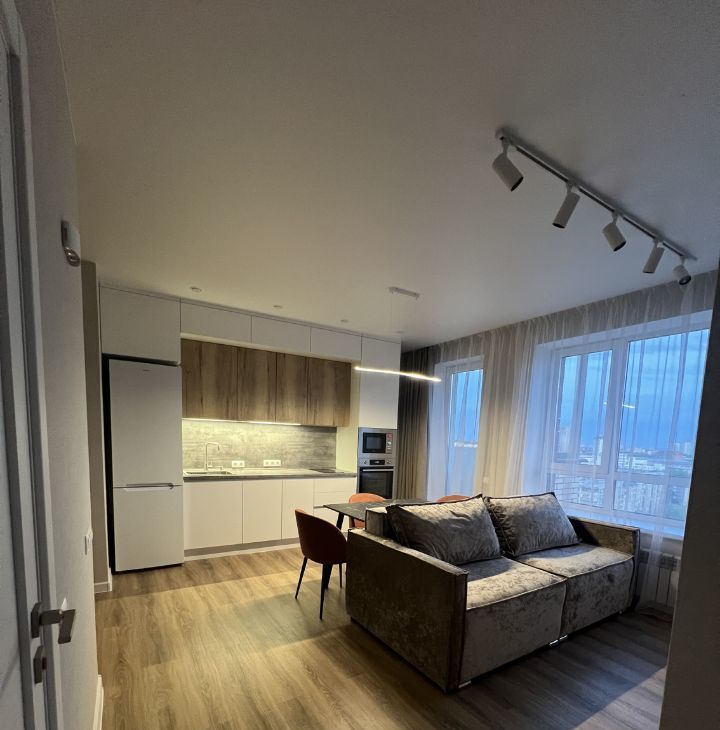 В квартире современный и уютный ремонт. С прекрасными видами на город и закат. Вся необходимая мебель и техника. Кондиционер, стиральная и посудомоечная машины.