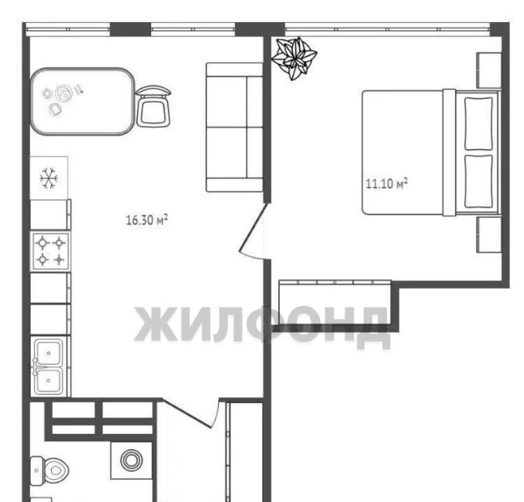 2-к кв. Новосибирская область, Новосибирск Выборная ул., 91/2 (44.1 м²)