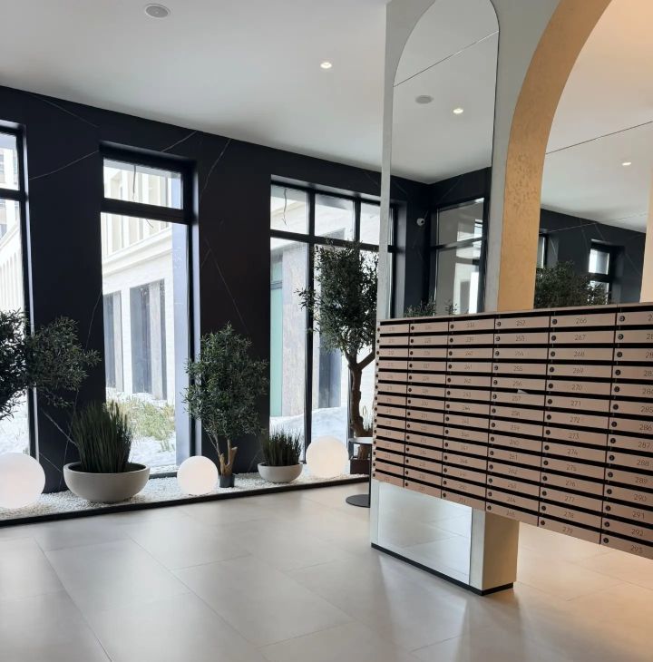 Закрытая территория, сервис хаб с магазинами и маркетплейсами, конечная остановка троллейбуса в минуте хотьбы. Парковка за шлагбаумом.