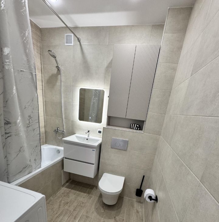 В квартире есть вся необходимая мебель, как на кухне, так и в комнате, что позволяет вам сразу заехать и наслаждаться комфортом. Из техники: холодильник, посудомоечная машина, телевизор и стиральная машина. Санузел совмещённый и оборудован ванной. Есть балкон, где можно насладиться свежим воздухом и видом.