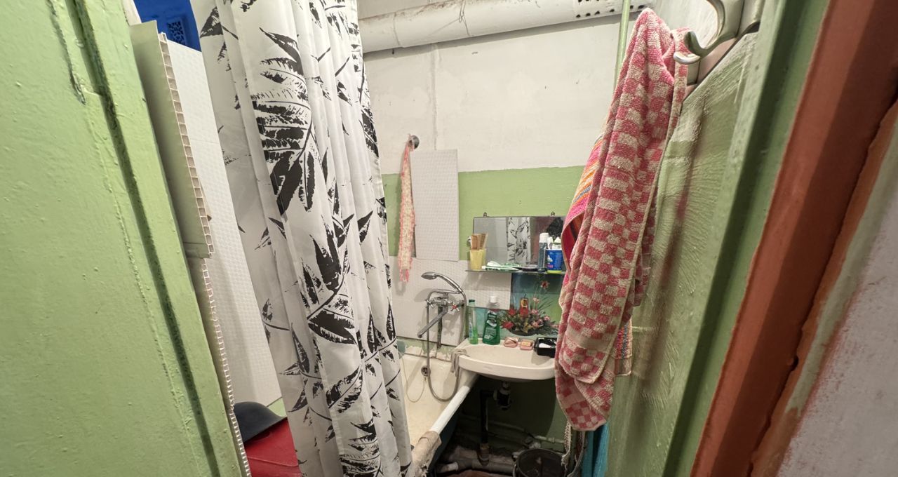 Находится сама квартира в хрущевке, ремонт достаточно старый. Сама комната 10.8 квадратов, раздельный санузел, кухня, кладовка. В самой комнате из проблем есть окно (открывается в одном положении), и конечно же старый ремонт. В квартире, так скажем зале, живет бабушка (она родственница владельца второй доли квартиры). В общем и целом на фото все видно.