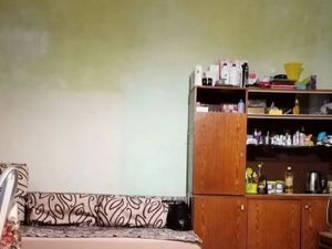 Комнаты изолированные, каждая оформлена в спокойных тонах: в одной установлен диван и мебель под телевизор, во второй — кровать, комод и вместительный шкаф. Пространство светлое, с большими окнами и аккуратными обоями.