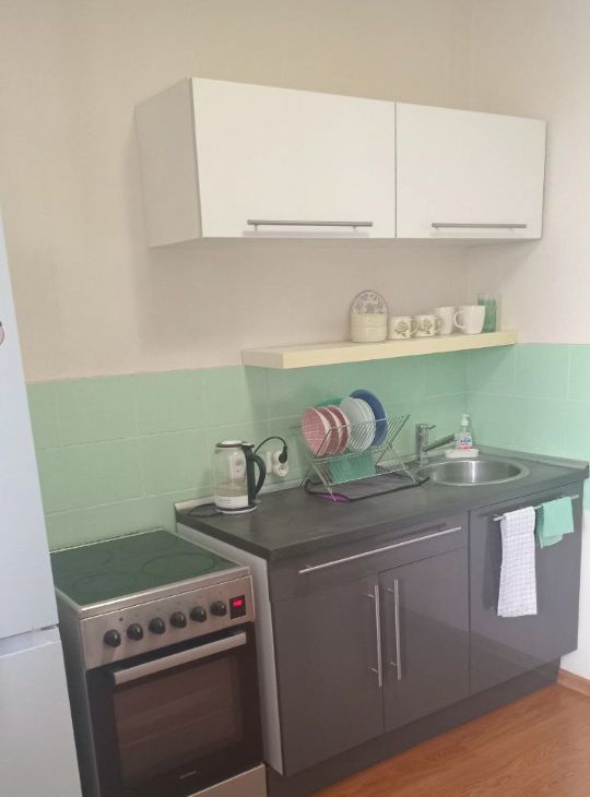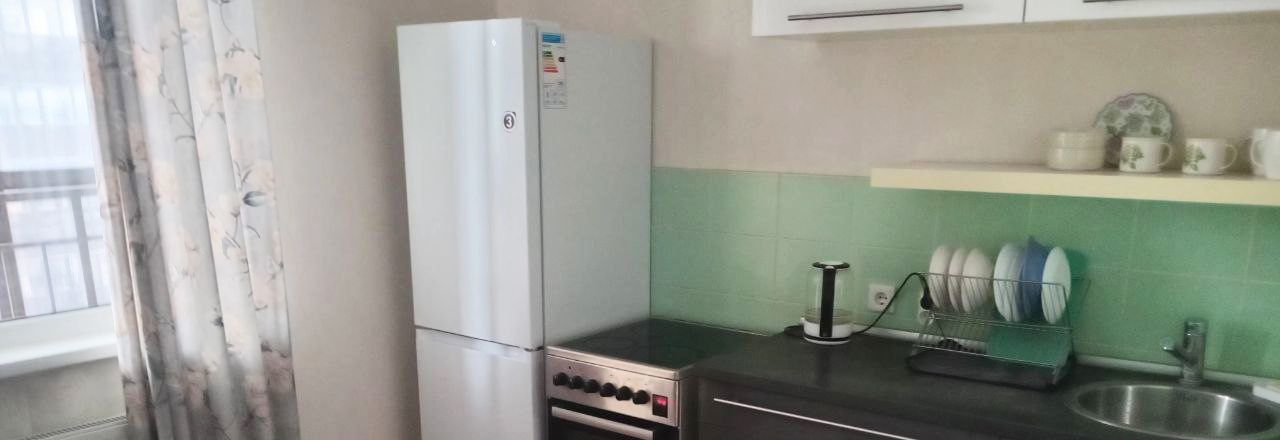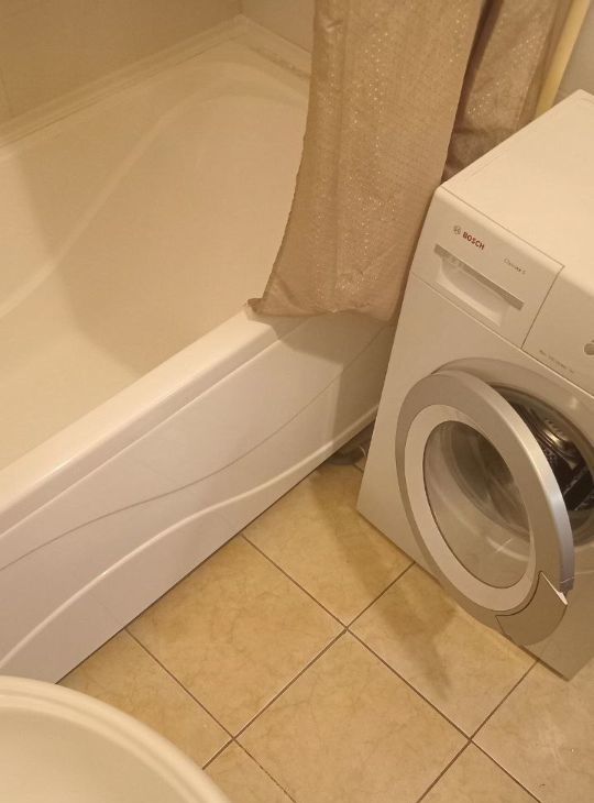 Кухня оборудована холодильником, плитой с духовкой. Ванна оборудована стиральной машинкой. В кухне имеется необходимая посуда для готовки. Также в квартире есть утюг с гладильной доской и сушилка для белья. В прихожей вместительный шкаф для верхней одежды. Заезжай, живи!