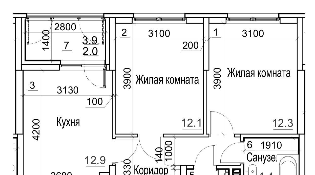 2-к кв. Новосибирская область, Новосибирск ул. Адриена Лежена, 23 (67.1 м²)