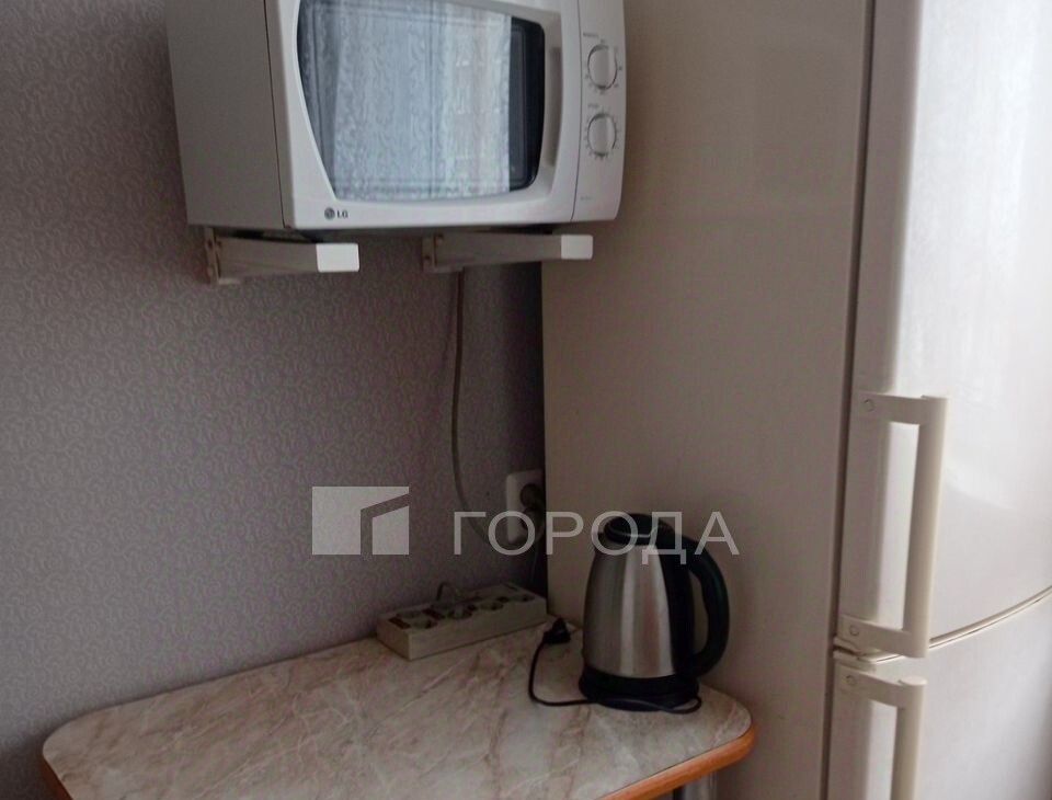 В квартире сделан косметический ремонт. Из мебели и техники имеется: кухонный гарнитур, электрическая плита, микроволновая печь, холодильник, чайник, стол обеденный и стулья, диван, кровать, шкаф. Санузел совмещенный, в кафеле.